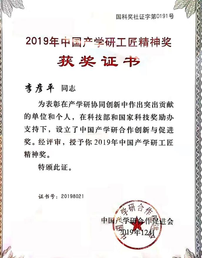 (李彥平董事長獲“中國產(chǎn)學(xué)研合作創(chuàng)新獎(jiǎng)”) (李彥平董事長獲“中國產(chǎn)學(xué)研工匠精神獎(jiǎng)獎(jiǎng)”)